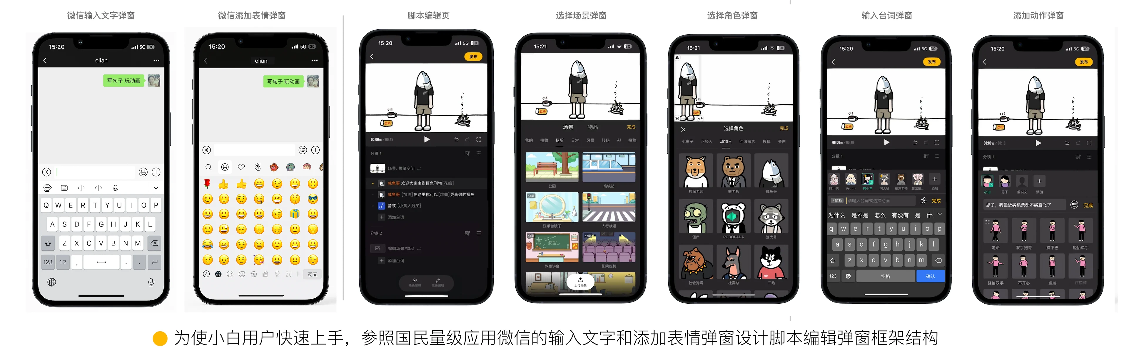 为提升易学性,我们在用户最熟悉的文字输入工具——国民应用微信聊天输入弹窗的框架基础上,对脚本编辑功能进行了体验的创新和迭代。